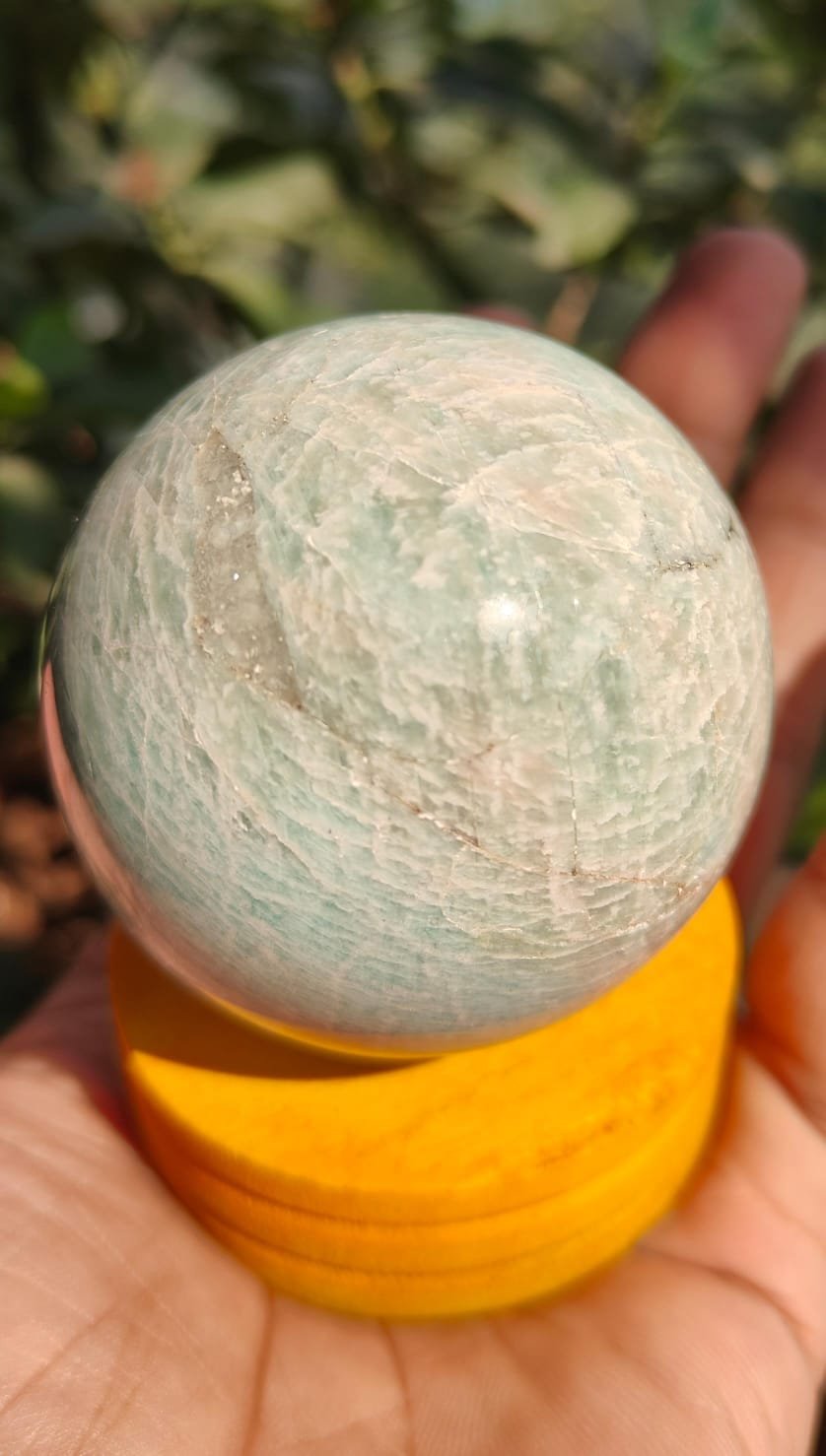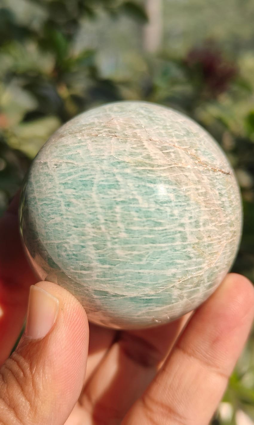 The Amazonite Sphere Crystal Ball is a powerful healing crystal known for its soothing energy, emotional balance, and ability to calm the mind. Crafted from natural Amazonite stone and shaped into a perfect sphere, this crystal radiates gentle, harmonizing vibrations in all directions. The spherical form allows energy to flow smoothly without interruption, making it an ideal crystal for meditation, stress relief, Reiki healing, and spiritual décor.
