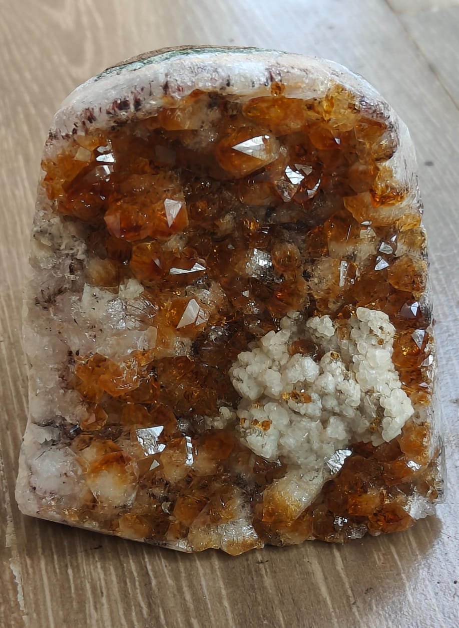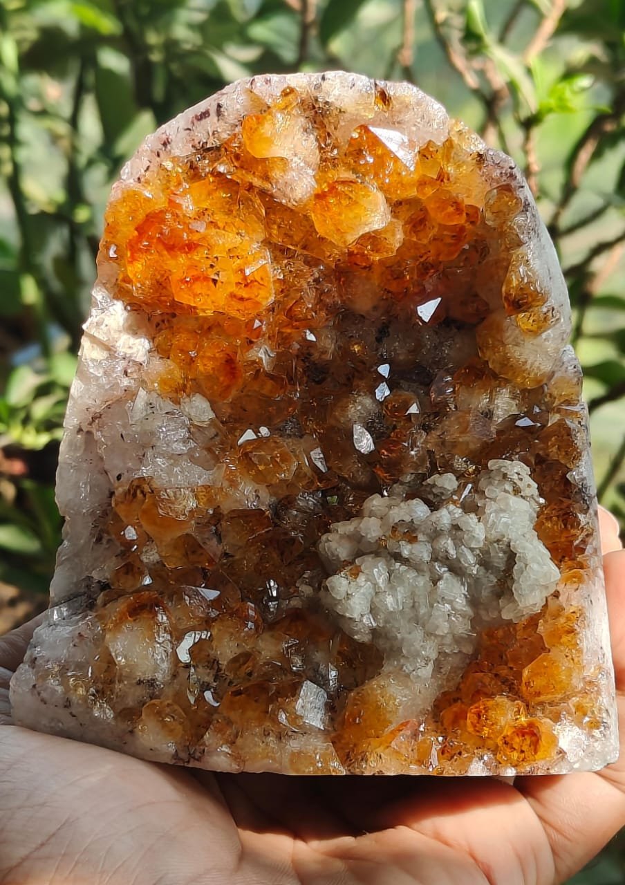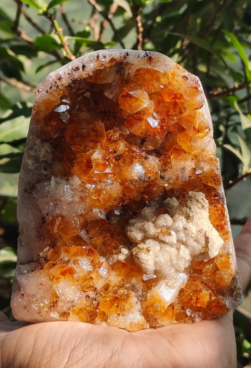 AAA Citrine Geode with Calcite deposit – A stunning natural crystal geode radiating positivity, abundance, and joy.