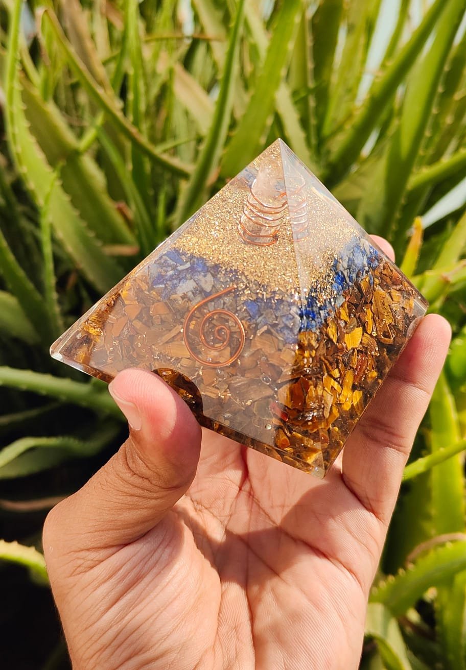 The Focus Pyramid blends the intuitive power of Lapis Lazuli with the grounding strength of Tiger Eye to improve concentration, mental clarity, and decision-making. Lapis Lazuli supports deep thinking, intuition, and insight, while Tiger Eye brings focus, discipline, and stable energy—helping you stay aligned with your goals.