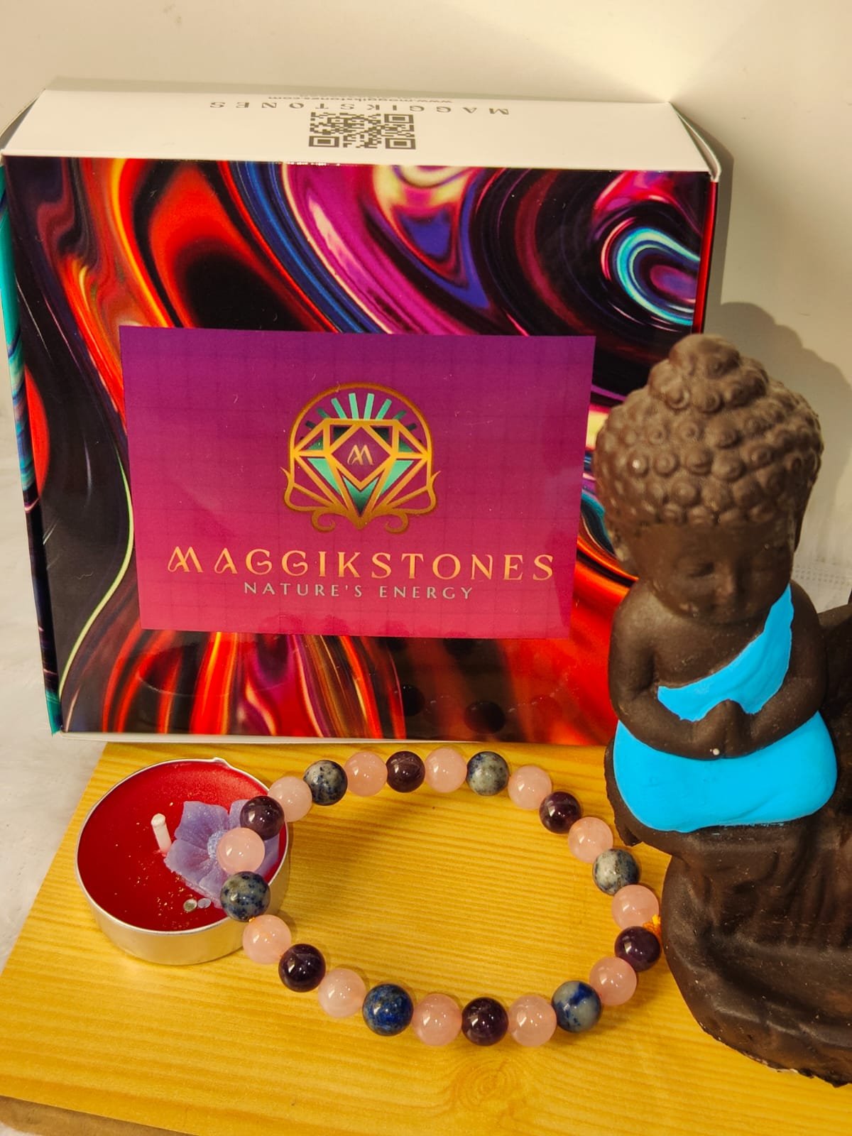 At Maggikstones, each Peace of Mind Bracelet is handcrafted using 100% natural Amethyst, Rose Quartz, and Lapis Lazuli, carefully selected for color, clarity, and energetic strength. Each bracelet is polished and energetically cleansed to ensure it supports your mental clarity, emotional balance, and inner peace.