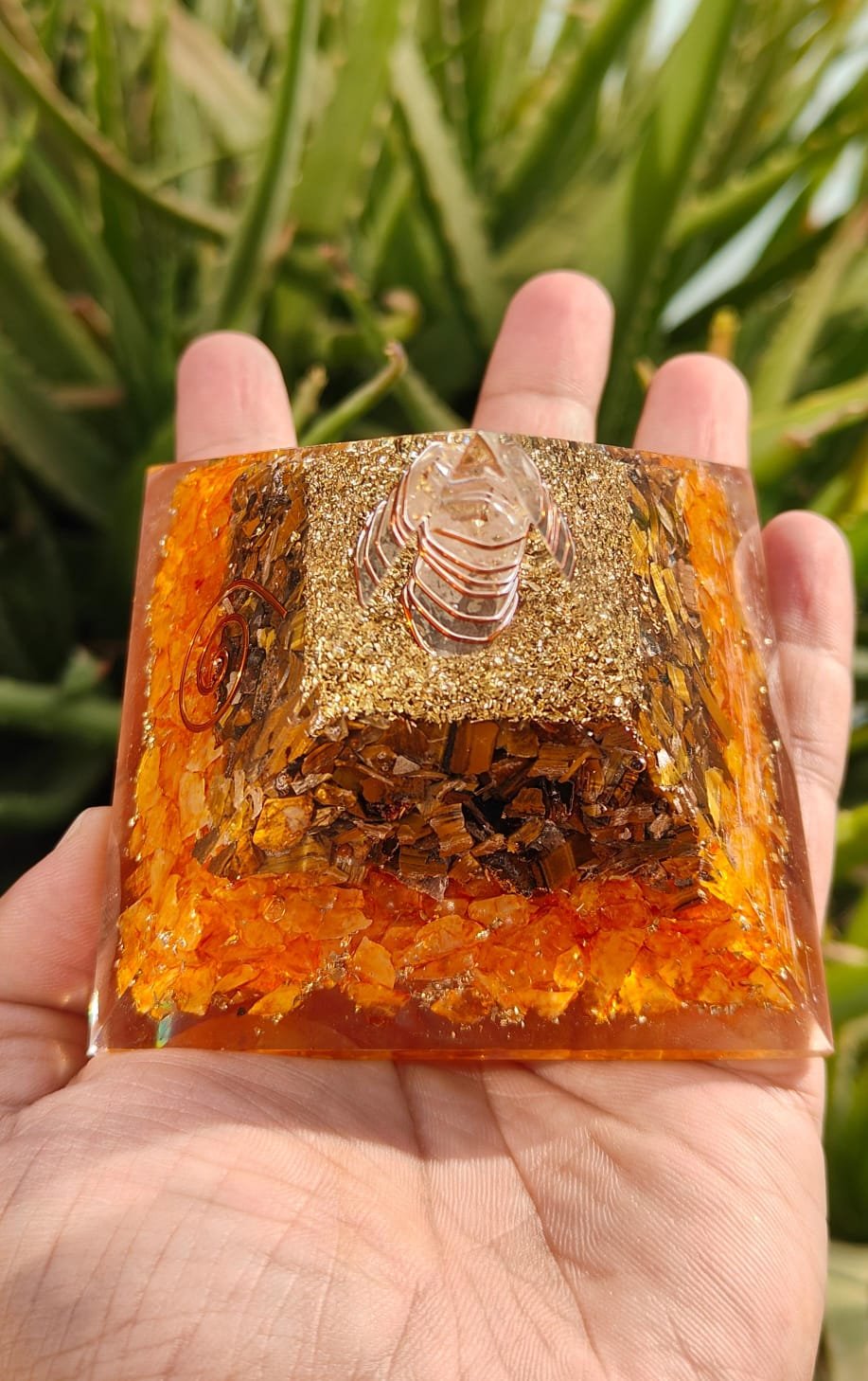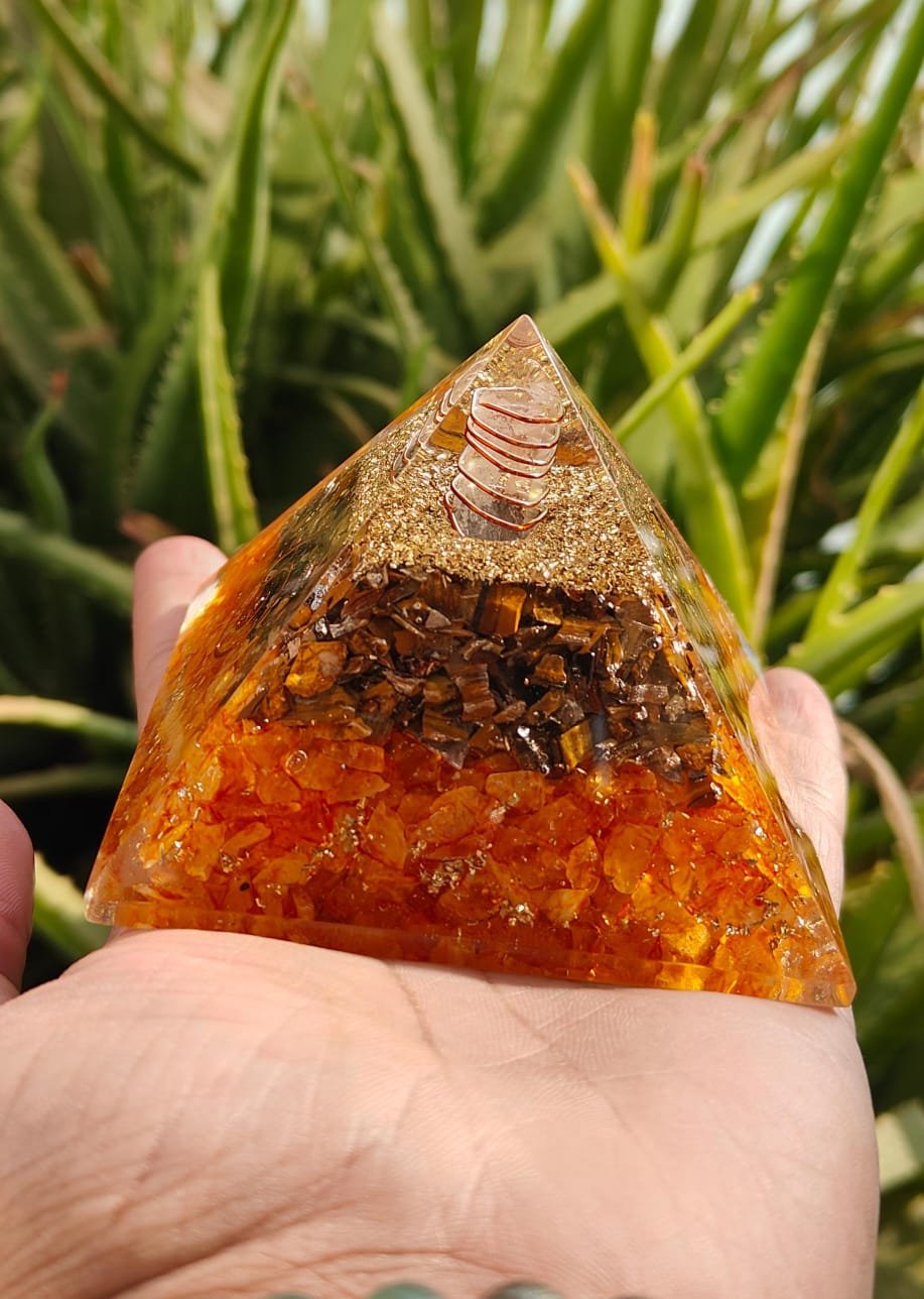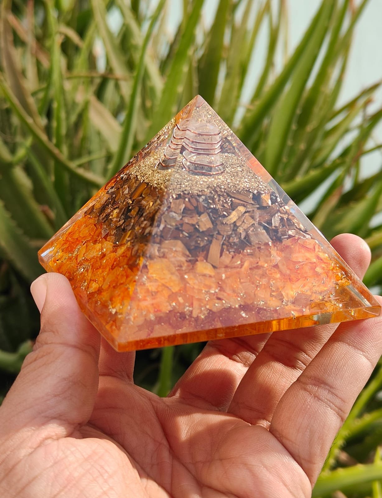 The Prosperity Pyramid combines the grounding energy of Tiger Eye with the abundance-attracting vibrations of Citrine to invite wealth, confidence, and success. Tiger Eye enhances focus, courage, and clarity in decision-making, while Citrine, known as the “Stone of Abundance,” draws prosperity and optimism. Shaped into a 3-inch pyramid, it amplifies their combined energies, making it ideal for workspaces, wealth corners, or meditation areas. This crystal pyramid supports financial growth, personal empowerment, and a mindset of success.